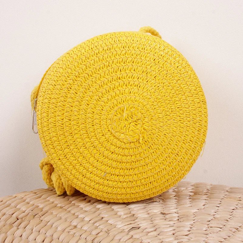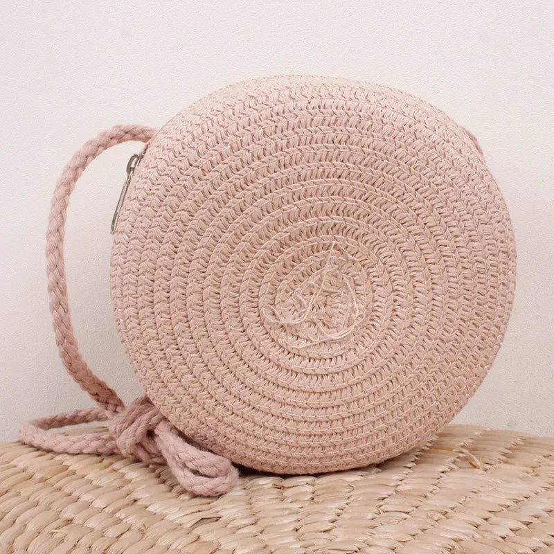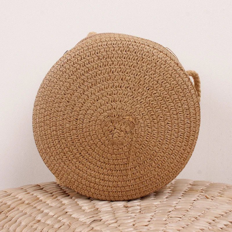 Summer Round Straw Bag For Women Woven Handmade Shoulder Bag New Travel Rattan Beach Bag Casual Style Crossbody Bag Handbag Purs - Maka Boho